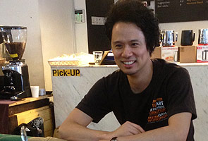 “Saya gembira jika pelanggan tersenyum melihat corak buih latte hasil saya,” kata barista yang berusia 33 tahun yang kini bekerja di Tokyo.